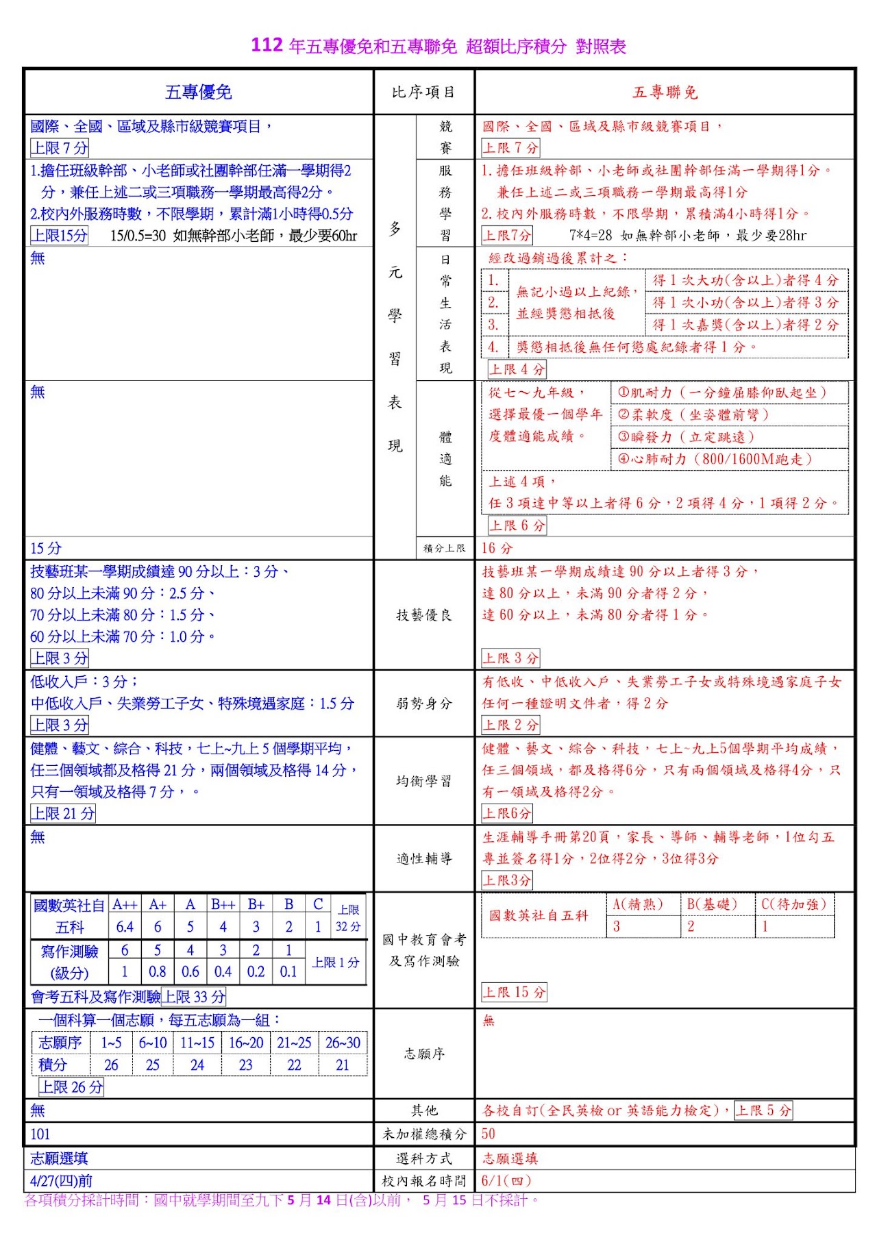 112年五專優免和五專聯免 超額比序積分 對照表.jpg
